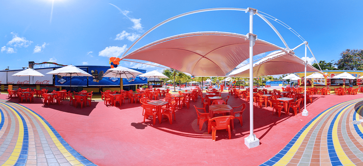 Esse espaço fica bem em frente a Praça de alimentação e nele, tem uma grutinha bem refrescante, com água para todos os lados, além de chuveiros em formato de cogumelos bem coloridos. Para os papais que preferem sentar em uma mesa no entorno dessa praça e olhar seus filhotes de pertinho, é perfeito. Vai lá conferir!!!