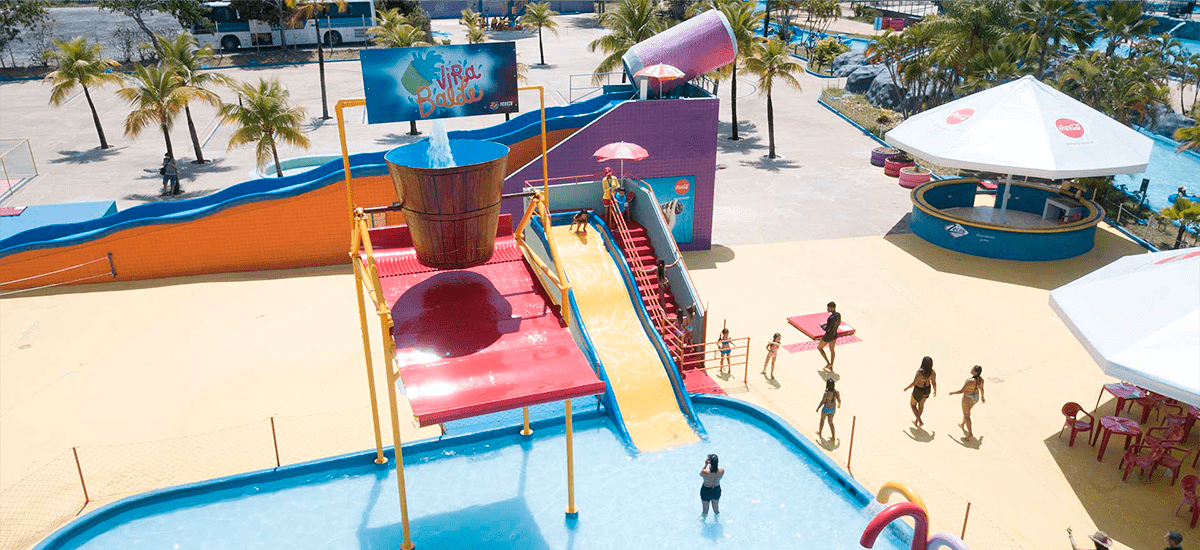 Gostoso, suave e bem refrescante. Aqui, crianças e adultos podem se divertir descendo sobre boias numa rampa aquática que deságua em uma piscina ampla e bem divertida.