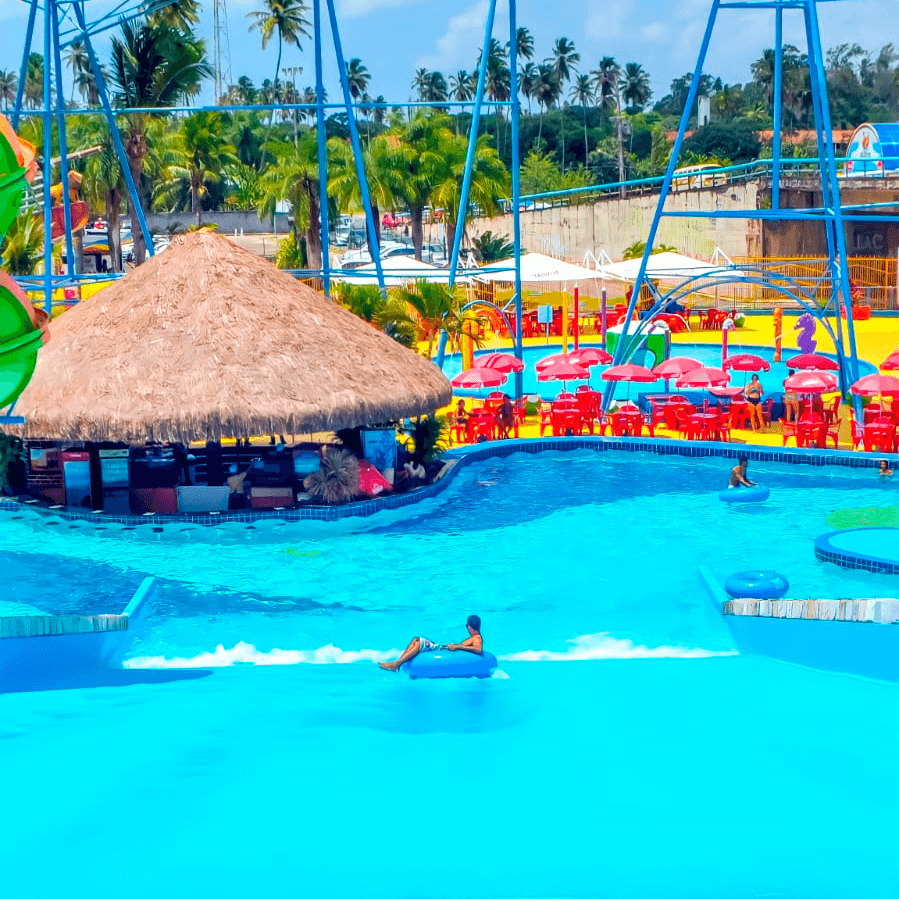 Imensa piscina paradisíaca com clima tropical e com ondas suaves. O que mais você quer da vida?